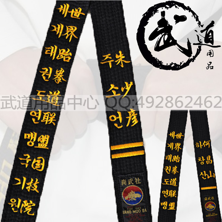 Taekwondo Black Belt Embroidered Words Martial Arts Karate Judo Jeet Kune Do Coach Belt Korean Duan Embroidered Road Belt